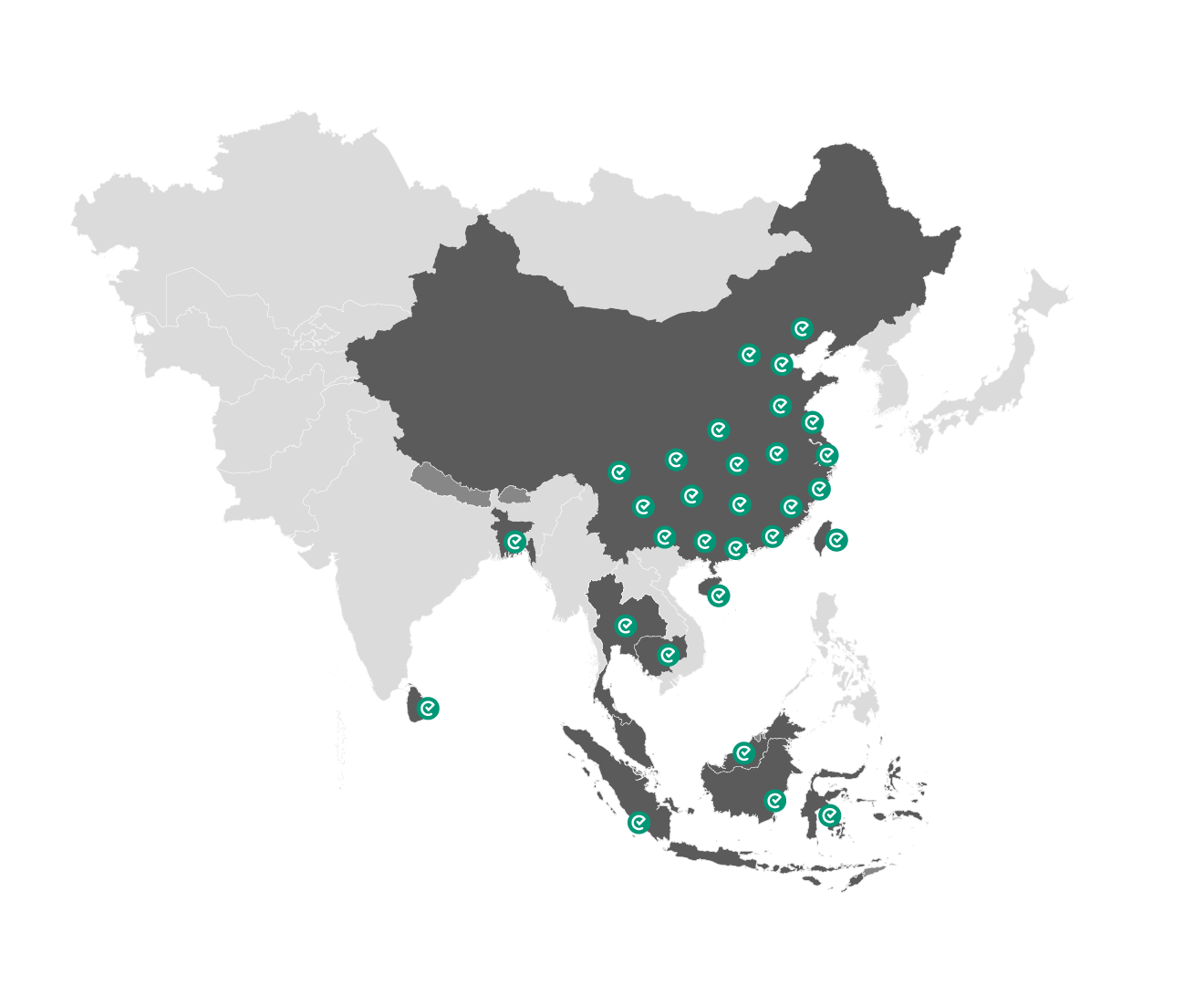 Cubrimos toda China y gran parte del sureste asiático, presentes en más de 15 países.